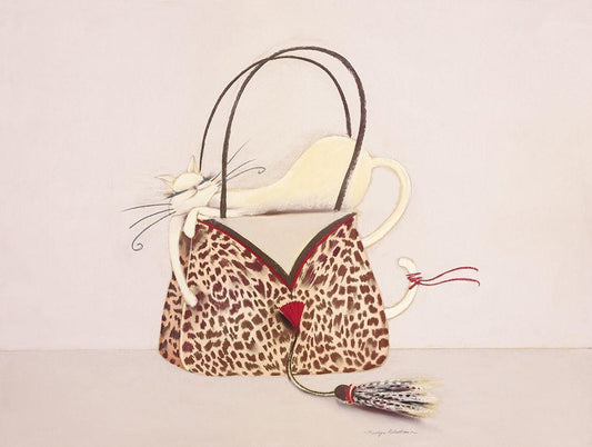 THE CAT OUT OF THE BAG I White Modern Wood Framed Art Print with Double Matting by Robertson, Marilyn
