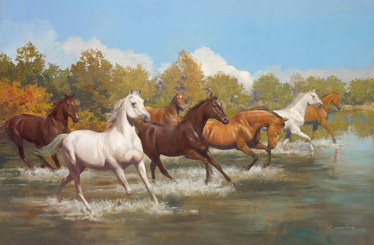 STAMPEDE White Modern Wood Framed Art Print with Double Matting by Lombardo, Spartaco