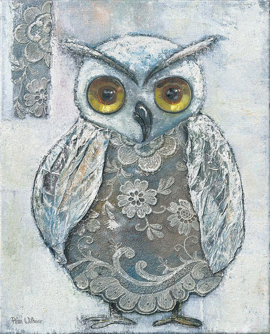 LACE OWL I White Modern Wood Framed Art Print with Double Matting by Withaar, Rian