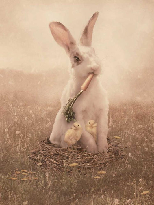 Easter Bunny White Modern Wood Framed Art Print with Double Matting by Babette