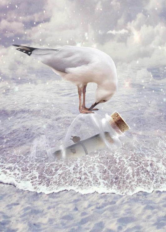 Bottle and Seagull White Modern Wood Framed Art Print with Double Matting by Babette