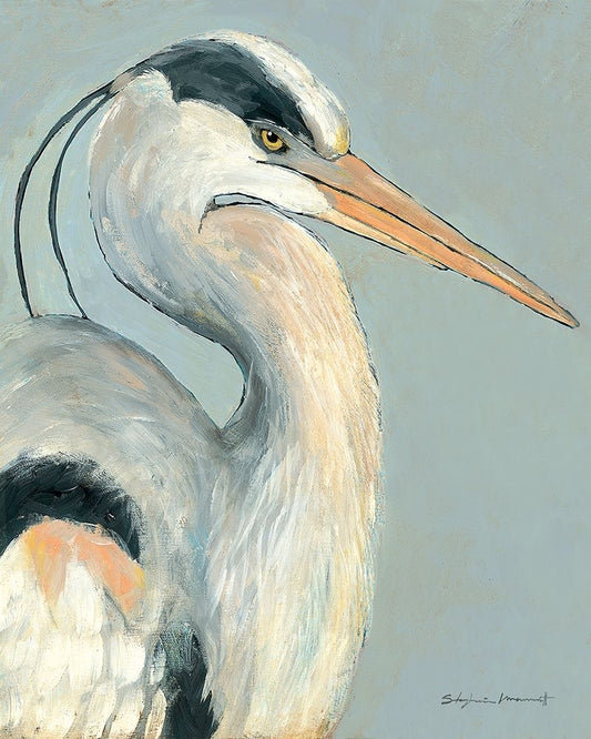 Heron On Grey White Modern Wood Framed Art Print with Double Matting by Marrott, Stephanie