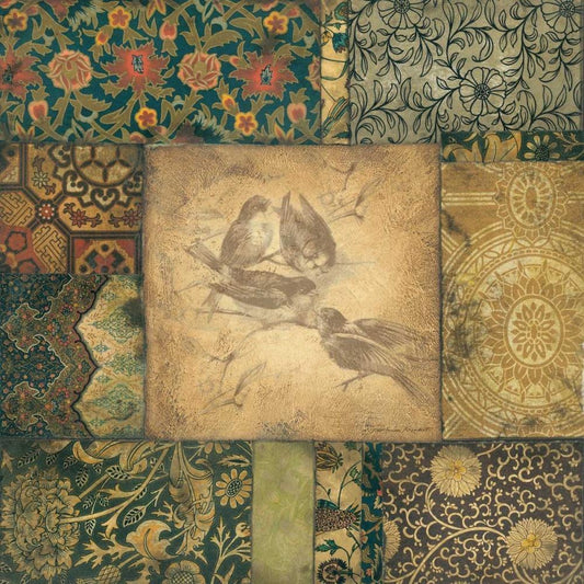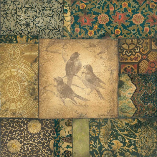 Avian Tapestry I White Modern Wood Framed Art Print with Double Matting by Marrott, Stephanie