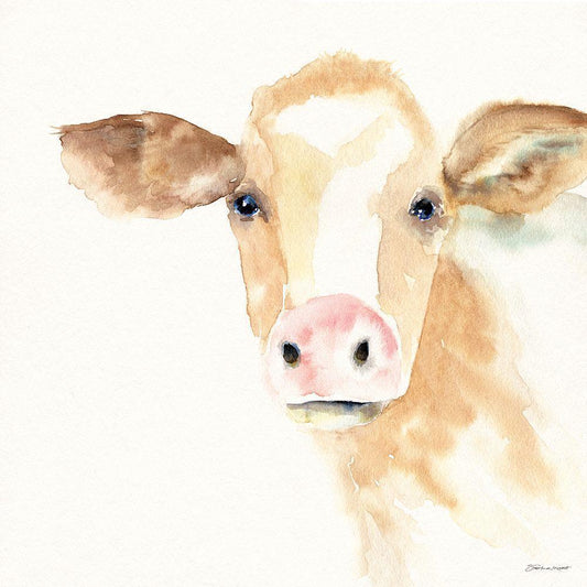 On The Farm Cow White Modern Wood Framed Art Print with Double Matting by Marrott, Stephanie
