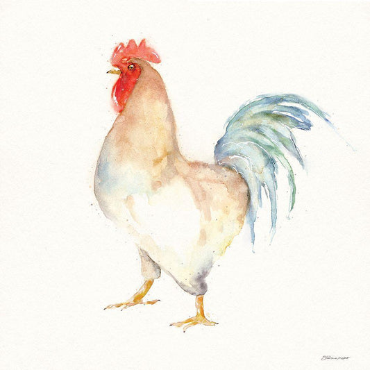 On The Farm Rooster White Modern Wood Framed Art Print with Double Matting by Marrott, Stephanie