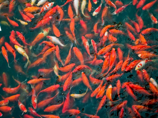 Goldfish gathering at surface, close-up White Modern Wood Framed Art Print with Double Matting by Frank, Assaf