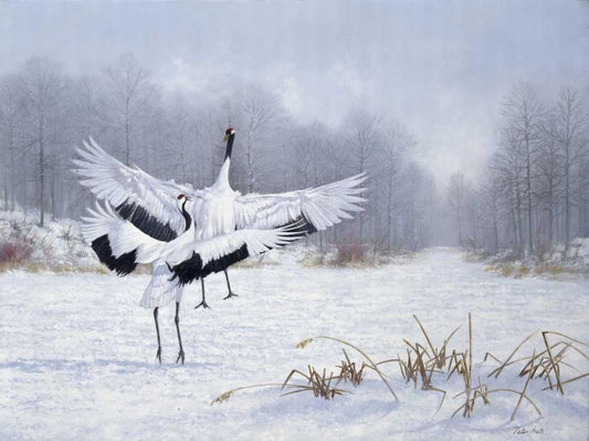 Swans White Modern Wood Framed Art Print with Double Matting by Motz, Peter