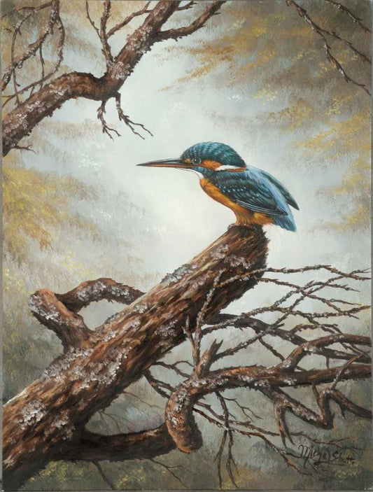 Hawk in tree White Modern Wood Framed Art Print with Double Matting by Weenink, Jan