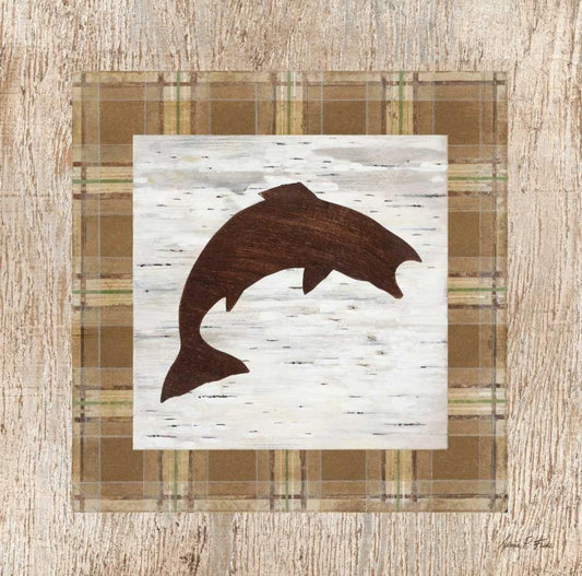 Jumping Salmon White Modern Wood Framed Art Print with Double Matting by Fisk, Arnie