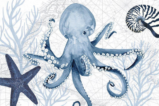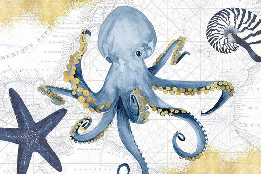 Deep Blue Sea VI Navy Gold White Modern Wood Framed Art Print with Double Matting by Reed, Tara