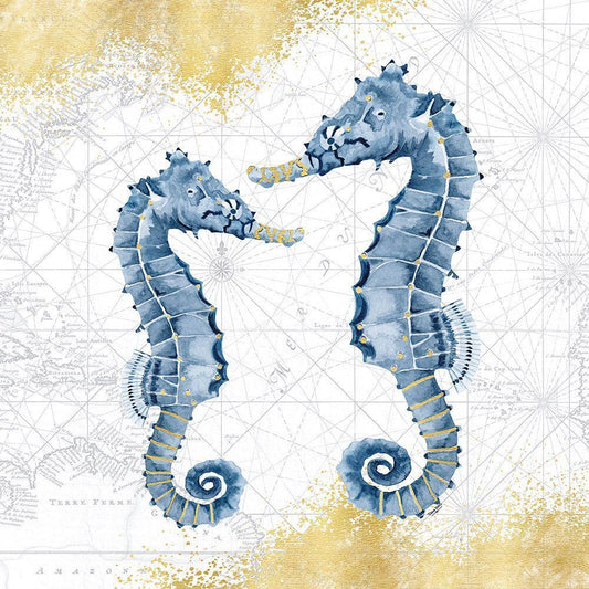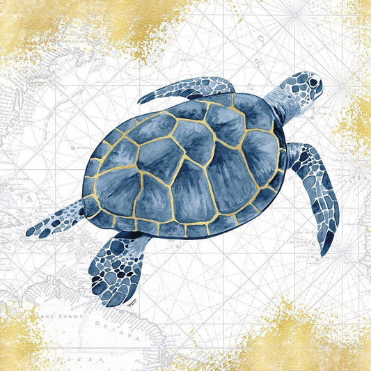 Deep Blue Sea V Navy Gold White Modern Wood Framed Art Print with Double Matting by Reed, Tara