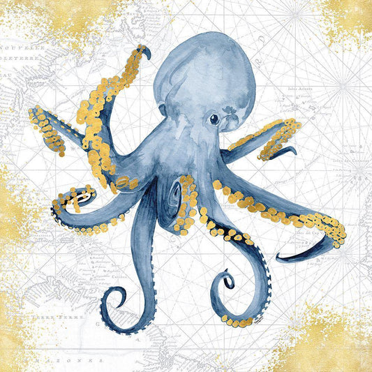 Deep Blue Sea I on Blue Gold White Modern Wood Framed Art Print with Double Matting by Reed, Tara