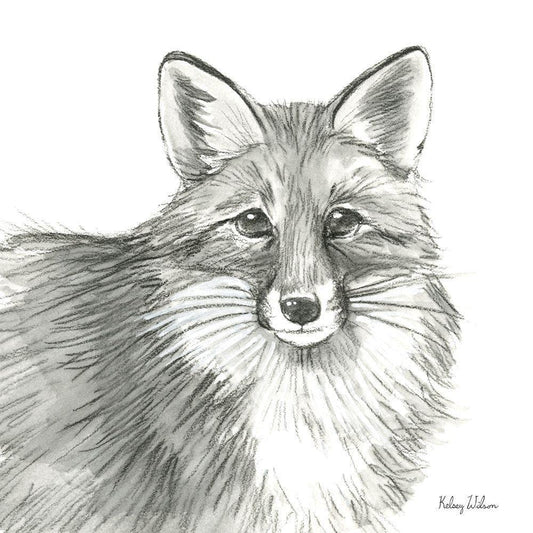 Watercolor Pencil Forest III-Fox White Modern Wood Framed Art Print with Double Matting by Wilson, Kelsey