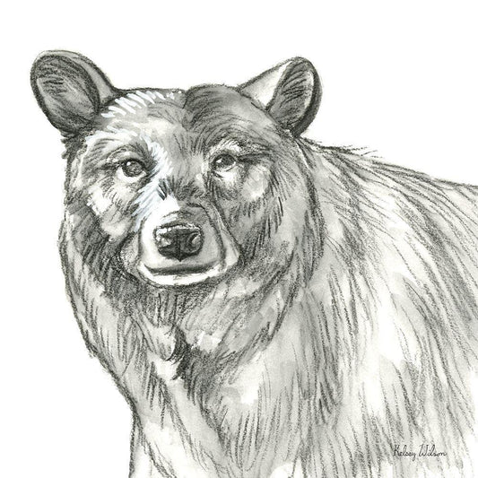 Watercolor Pencil Forest V-Bear White Modern Wood Framed Art Print with Double Matting by Wilson, Kelsey