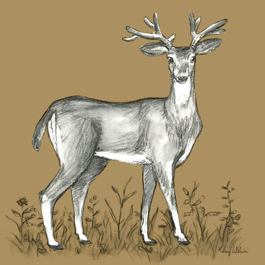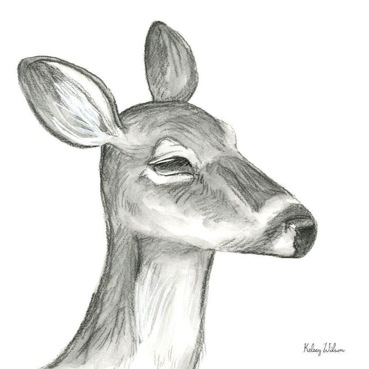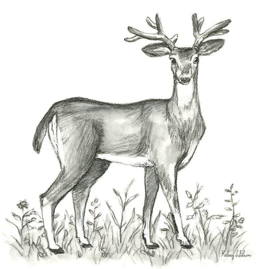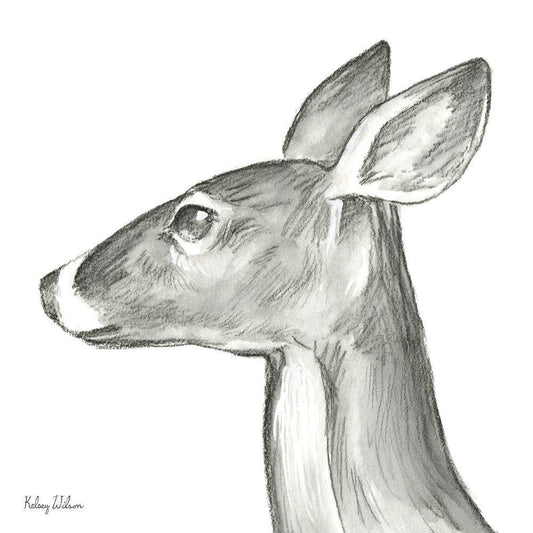 Watercolor Pencil Forest XI-Deer 2 White Modern Wood Framed Art Print with Double Matting by Wilson, Kelsey