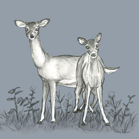 Watercolor Pencil Forest color X-Deer Family White Modern Wood Framed Art Print with Double Matting by Wilson, Kelsey