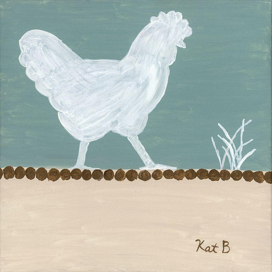 Out to Pasture IV-White Chicken White Modern Wood Framed Art Print with Double Matting by Bryan, Kathleen