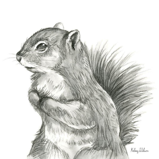 Watercolor Pencil Forest IV-Squirrel White Modern Wood Framed Art Print with Double Matting by Wilson, Kelsey