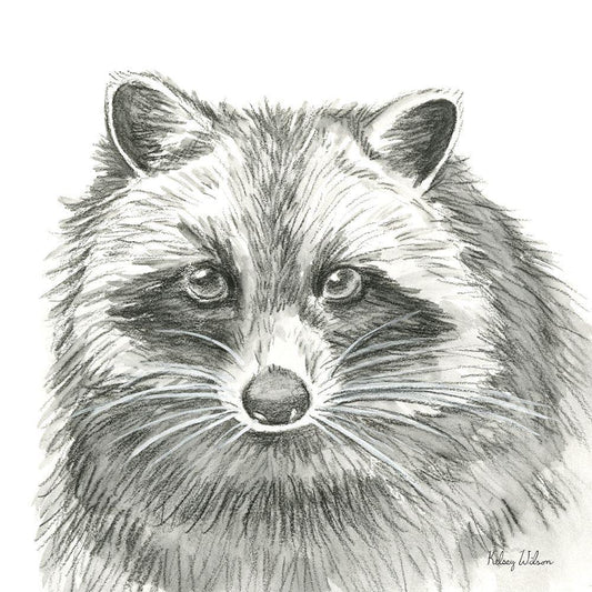 Watercolor Pencil Forest VI-Raccoon White Modern Wood Framed Art Print with Double Matting by Wilson, Kelsey