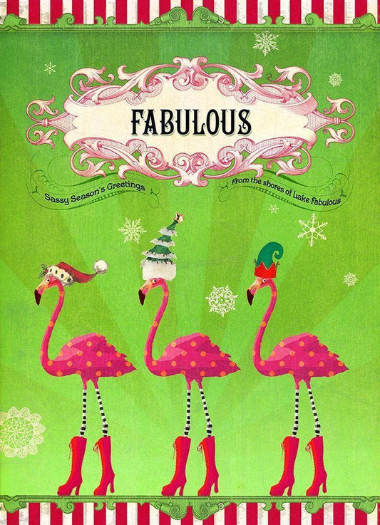 Colorful Christmas III-Fabulous Flamingo White Modern Wood Framed Art Print with Double Matting by Duirwaigh