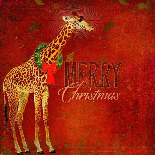 Colorful Christmas II-Giraffe Christmas White Modern Wood Framed Art Print with Double Matting by Duirwaigh