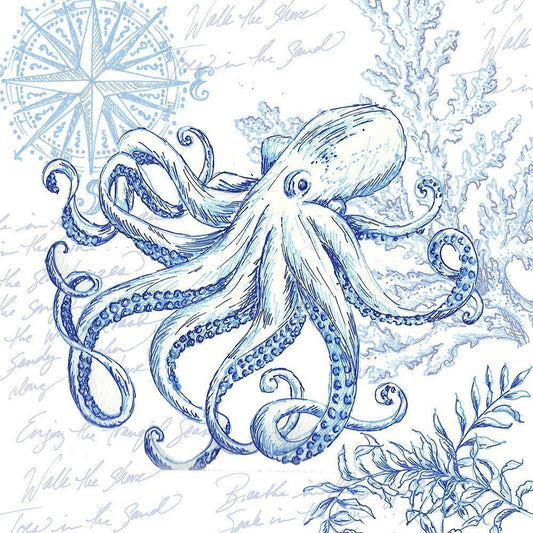 Coastal Sketchbook Octopus White Modern Wood Framed Art Print with Double Matting by Tre Sorelle Studios