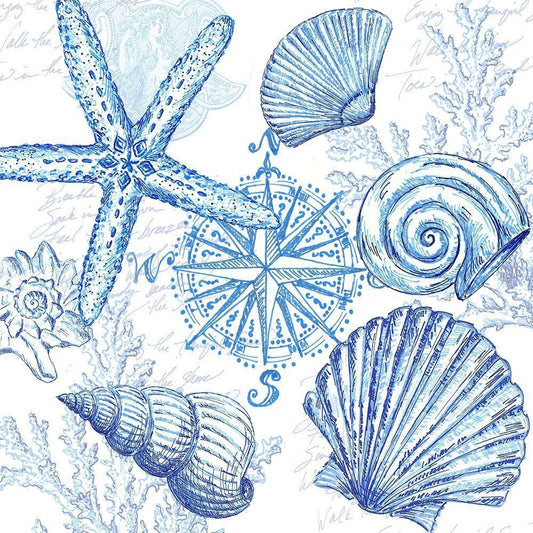 Coastal Sketchbook Shell Toss White Modern Wood Framed Art Print with Double Matting by Tre Sorelle Studios