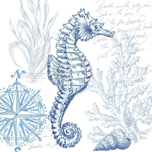 Coastal Sketchbook Sea Horse White Modern Wood Framed Art Print with Double Matting by Tre Sorelle Studios