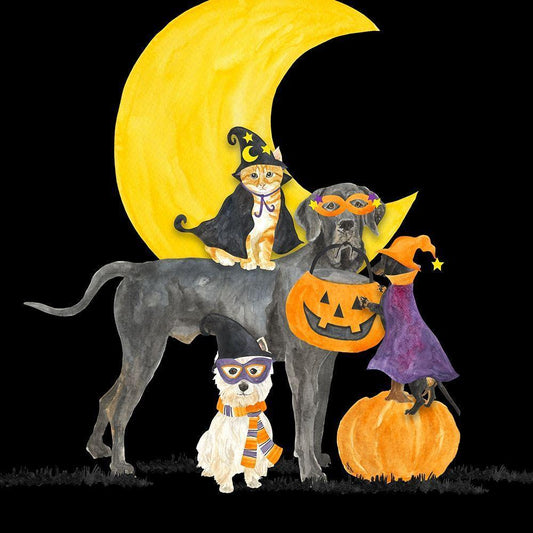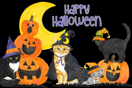 Fright Night Friends I-Black Cat White Modern Wood Framed Art Print with Double Matting by Reed, Tara