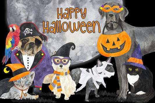 Fright Night Friends-Happy Halloween IV White Modern Wood Framed Art Print with Double Matting by Reed, Tara