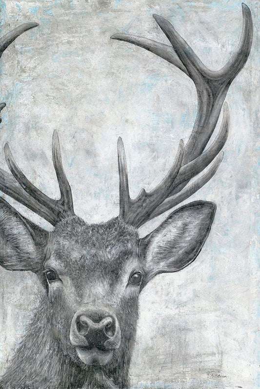 Rustic Lodge Animals Deer Head on Grey White Modern Wood Framed Art Print with Double Matting by Cusson, Marie Elaine