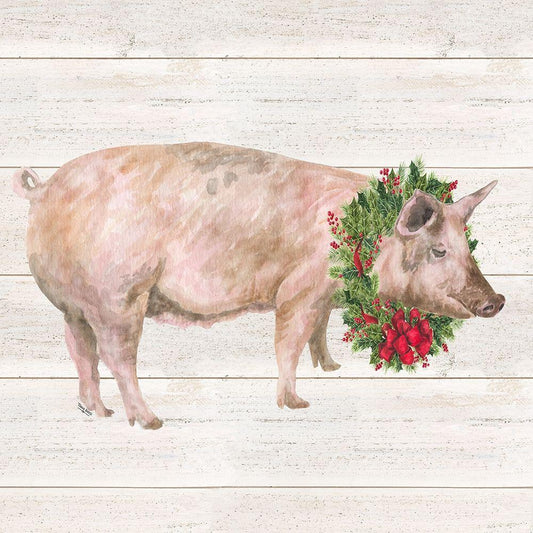 Christmas on the Farm IV-Pig White Modern Wood Framed Art Print with Double Matting by Reed, Tara