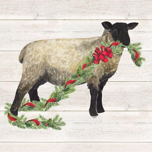 Christmas on the Farm V-Sheep White Modern Wood Framed Art Print with Double Matting by Reed, Tara