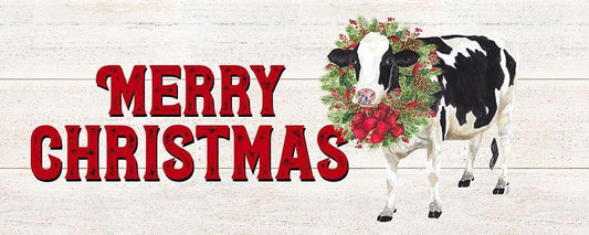 Christmas on the Farm III-Cow with Wreath White Modern Wood Framed Art Print with Double Matting by Reed, Tara