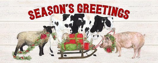 Christmas on the Farm-Seasons Greetings White Modern Wood Framed Art Print with Double Matting by Reed, Tara