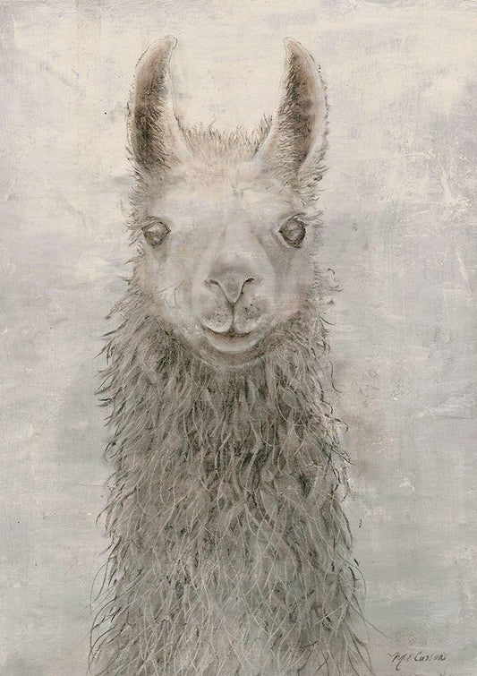 Llama Portrait White Modern Wood Framed Art Print with Double Matting by Cusson, Marie Elaine