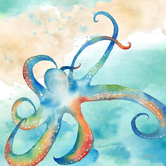 Sea Splash Octopus White Modern Wood Framed Art Print with Double Matting by Coulter, Cynthia