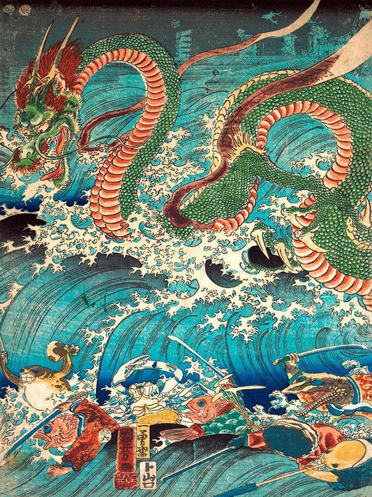 Recovering a jewel from the palace of the dragon king I White Modern Wood Framed Art Print with Double Matting by Utagawa, Kuniyoshi