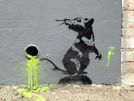 Rue des Hospitalieres Saint-Gervais, Paris White Modern Wood Framed Art Print with Double Matting by Anonymous (attributed to Banksy)