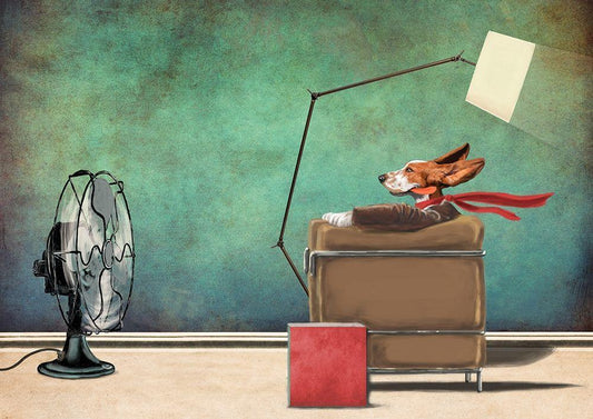 Dog Pups in a Suitcase (detail) White Modern Wood Framed Art Print with Double Matting by Pangea Images