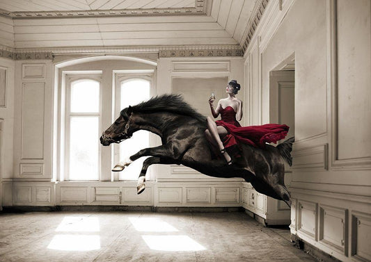 Unconventional Womenscape #7-In the Palace (BW) White Modern Wood Framed Art Print with Double Matting by Lauren, Julian