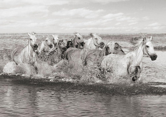 Herd of Horses- Camargue White Modern Wood Framed Art Print with Double Matting by Pangea Images