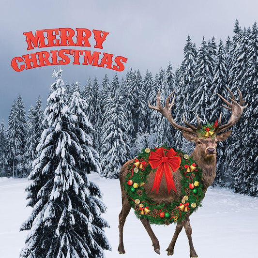 Moose Christmas White Modern Wood Framed Art Print with Double Matting by Burney, Yvonne Coleman