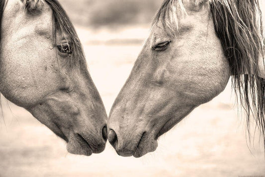 Horse Friends White Modern Wood Framed Art Print with Double Matting by Yellow Cafe