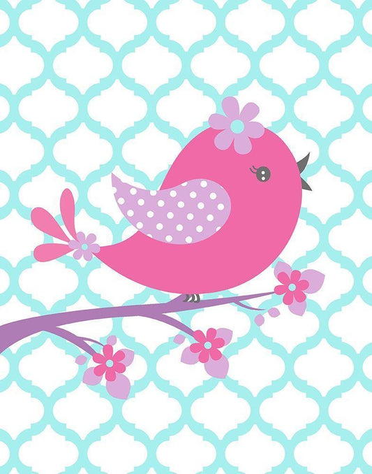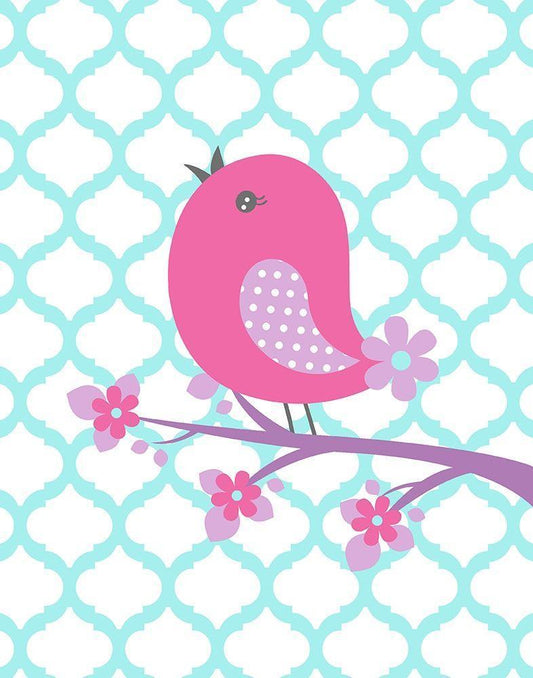 Bird Floral Branch I White Modern Wood Framed Art Print with Double Matting by Robinson, Tamara