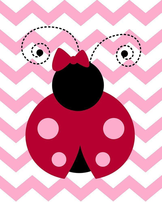 Ladybug Chevron White Modern Wood Framed Art Print with Double Matting by Robinson, Tamara