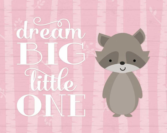 Dream Big Raccoon - Pink White Modern Wood Framed Art Print with Double Matting by Robinson, Tamara