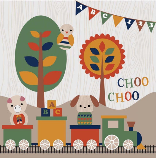 Toy Box Train White Modern Wood Framed Art Print with Double Matting by Robinson, Tamara