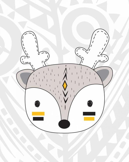 Tribal Deer White Modern Wood Framed Art Print with Double Matting by Robinson, Tamara