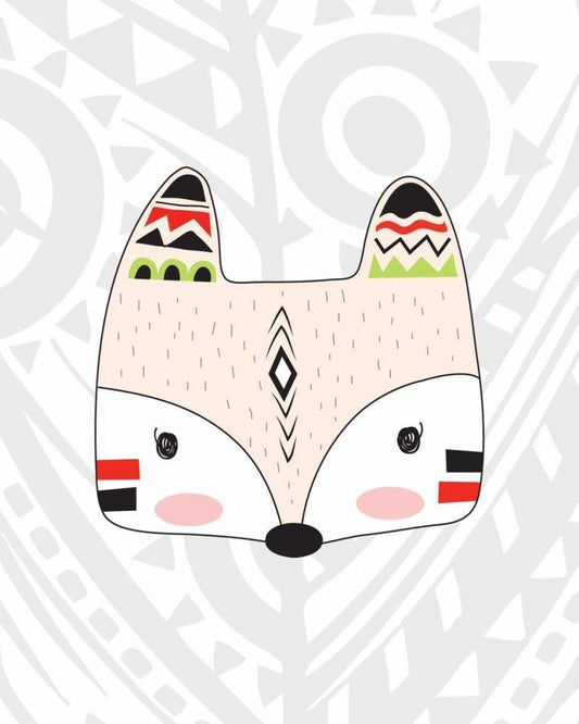 Tribal Fox White Modern Wood Framed Art Print with Double Matting by Robinson, Tamara